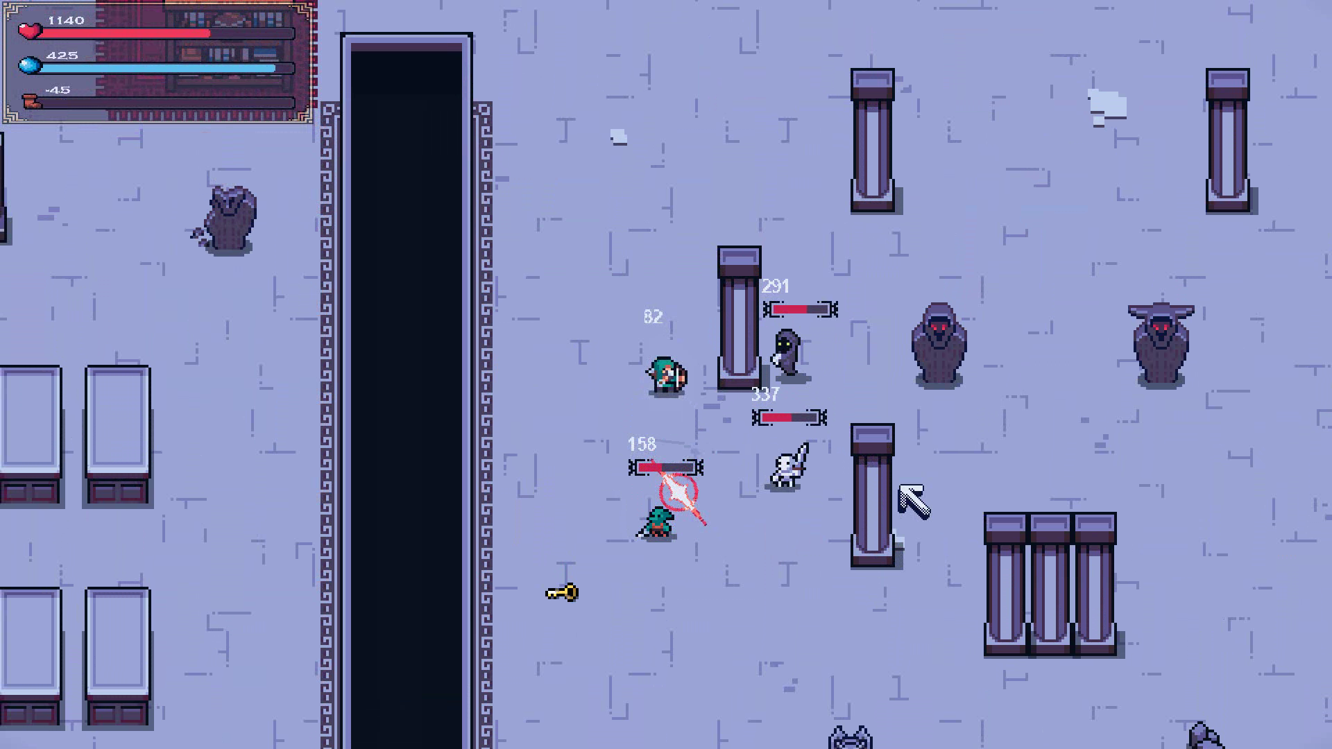 Note: I do not take credit for creation of the color palette, audio assets, or sprite assets! I have only recolored and combined them from various artists, with the only current exception being the main attack animation. All the credits are listed in the game on the credits page.